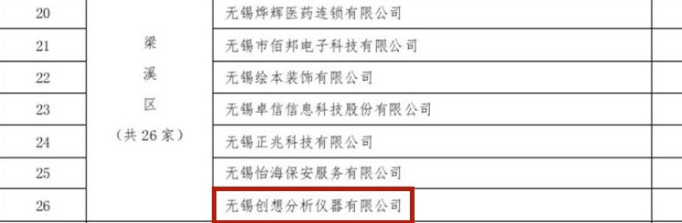 創(chuàng)想儀器被命名為無錫市AAA級(jí)重合同守信用企業(yè)